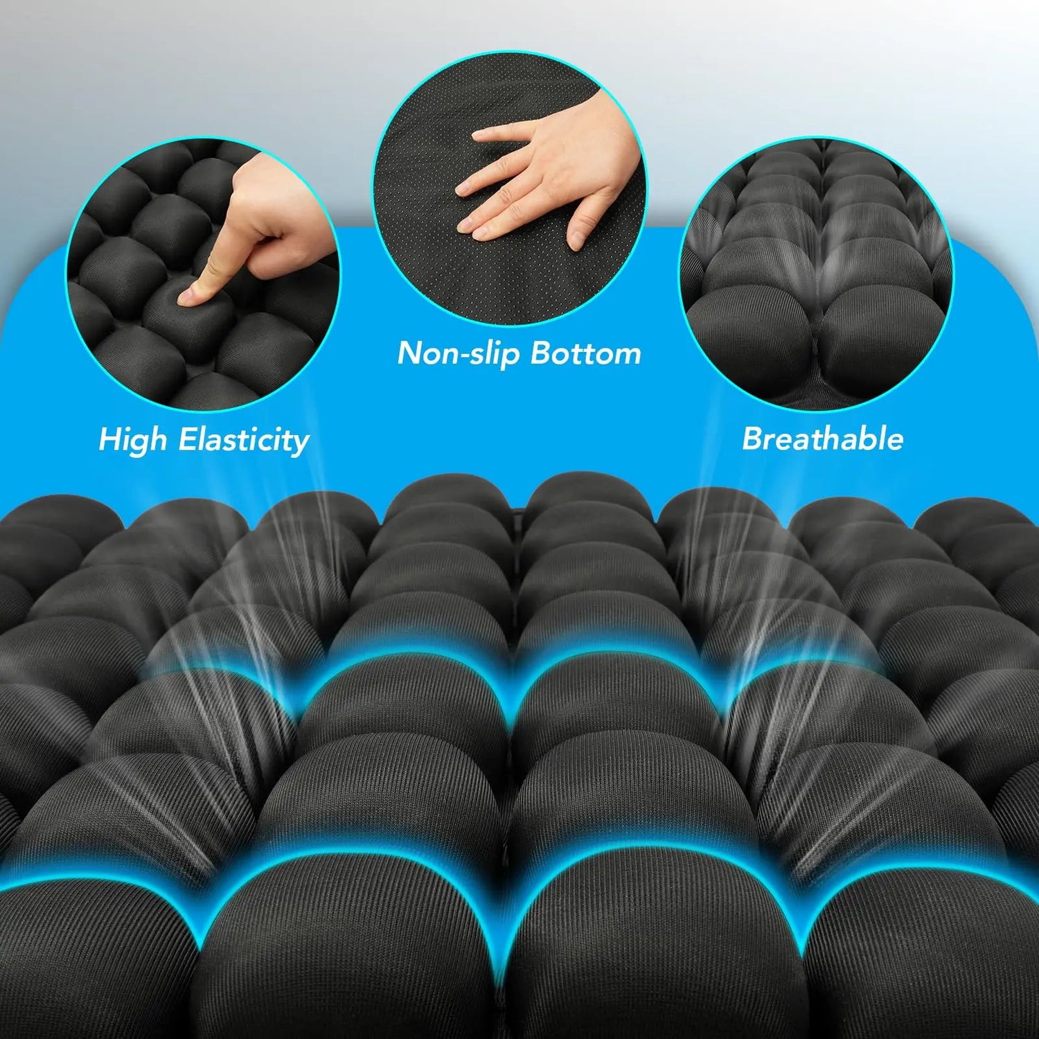CloudSeat™ is an ergonomic pressure-relief cushion designed to distribute weight evenly and support your tailbone.